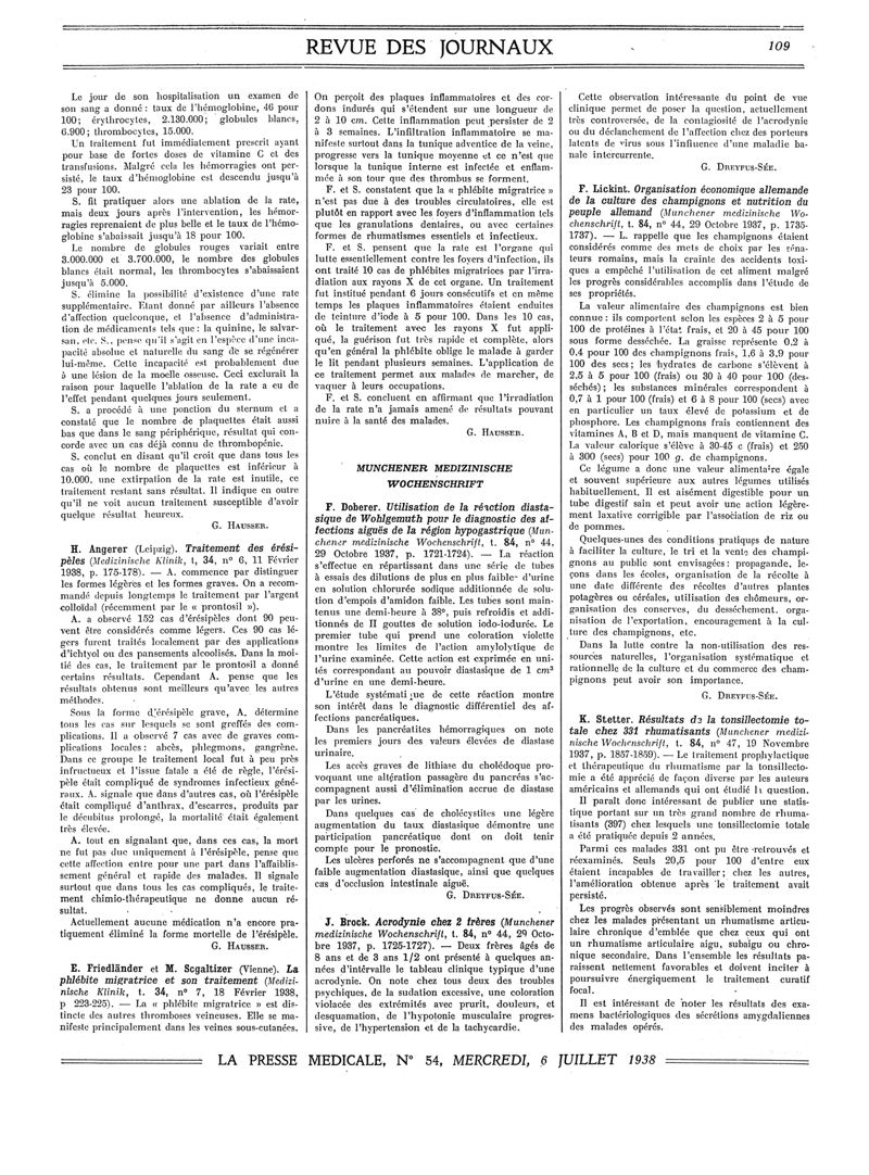 1938, Revue des journaux. -
