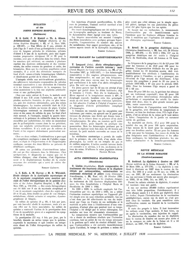 1938, Revue des journaux. -