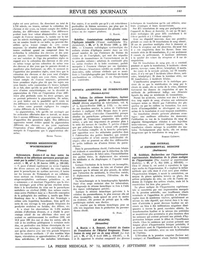 1938, Revue des journaux. -