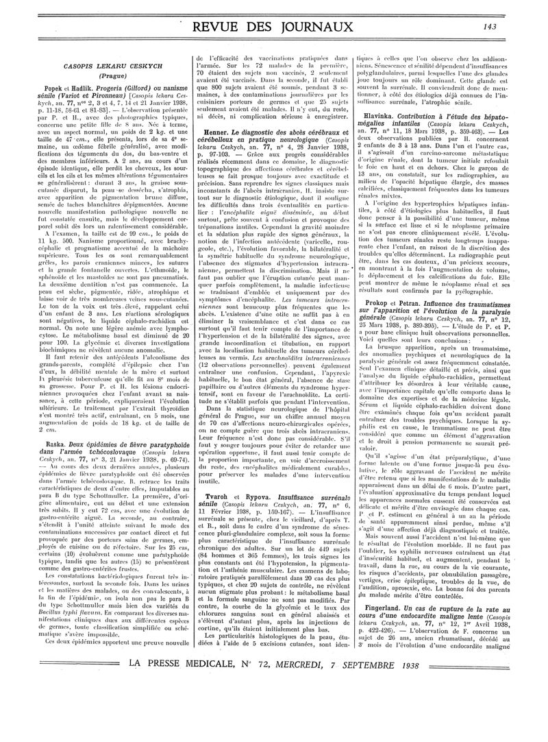 1938, Revue des journaux. -