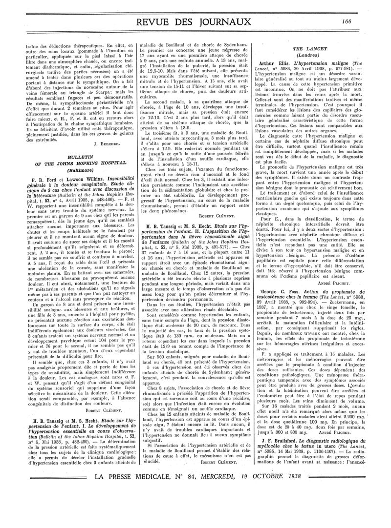1938, Revue des journaux. -