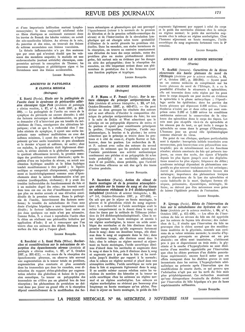 1938, Revue des journaux. -