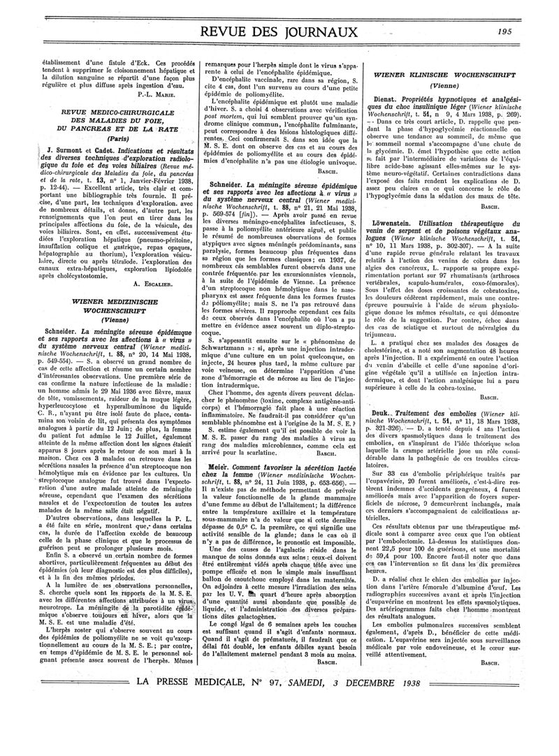 1938, Revue des journaux. -