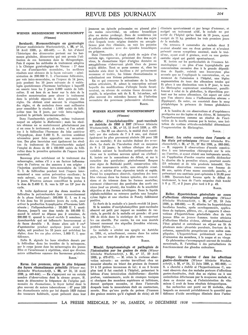 1938, Revue des journaux. -