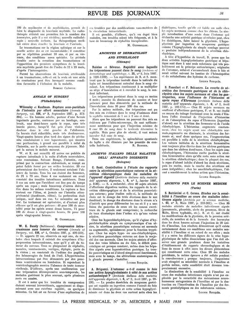 1938, Revue des journaux. -