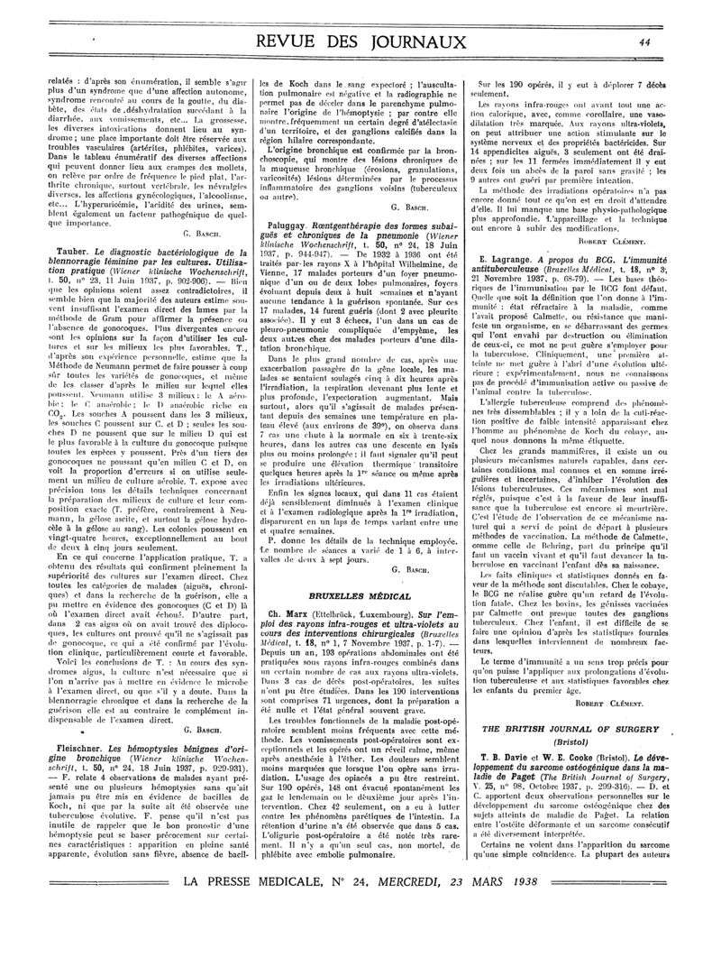 1938, Revue des journaux. -