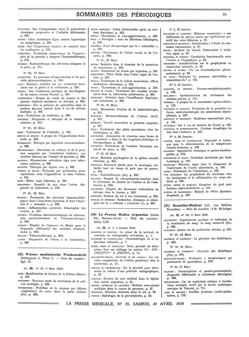 1938, Sommaires des périodiques. -