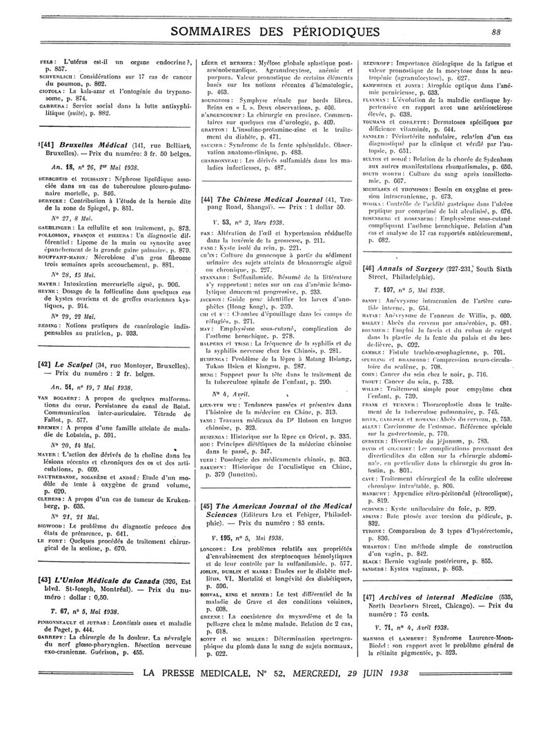 1938, Sommaires des périodiques. -