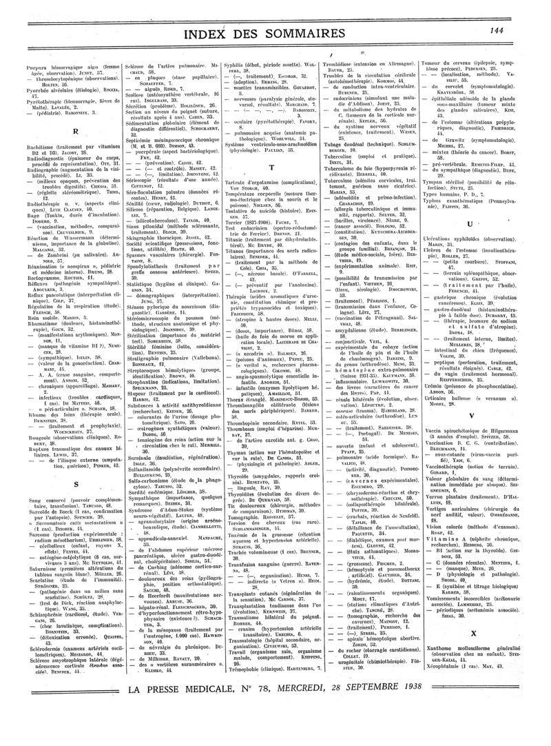 1938, Sommaires des périodiques. -