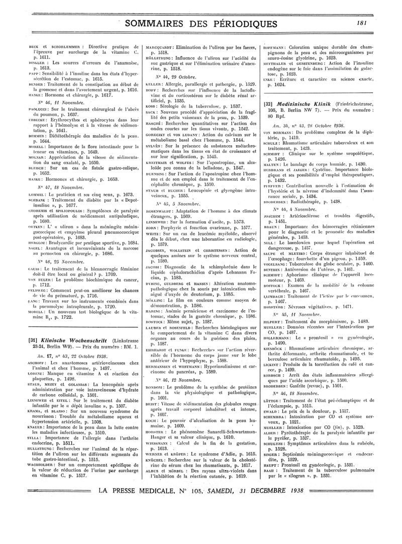 1938, Sommaires des périodiques. -