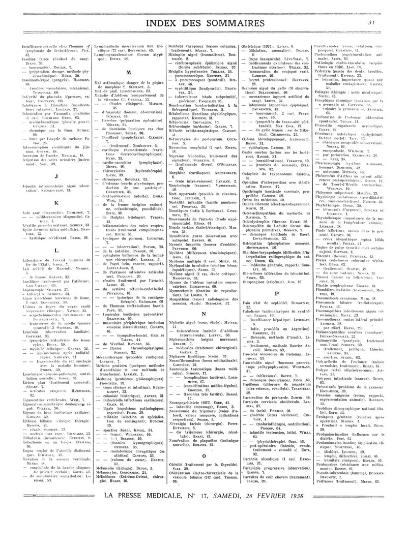 1938, Sommaires des périodiques. -