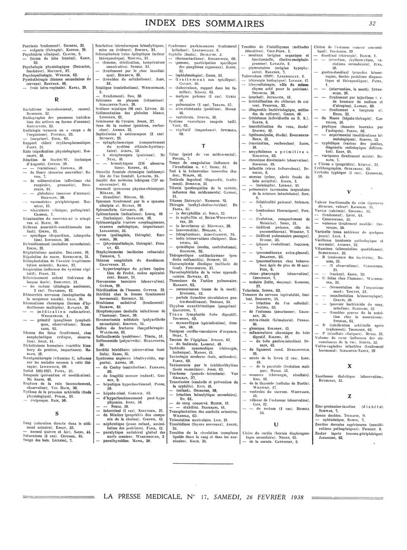 1938, Sommaires des périodiques. -