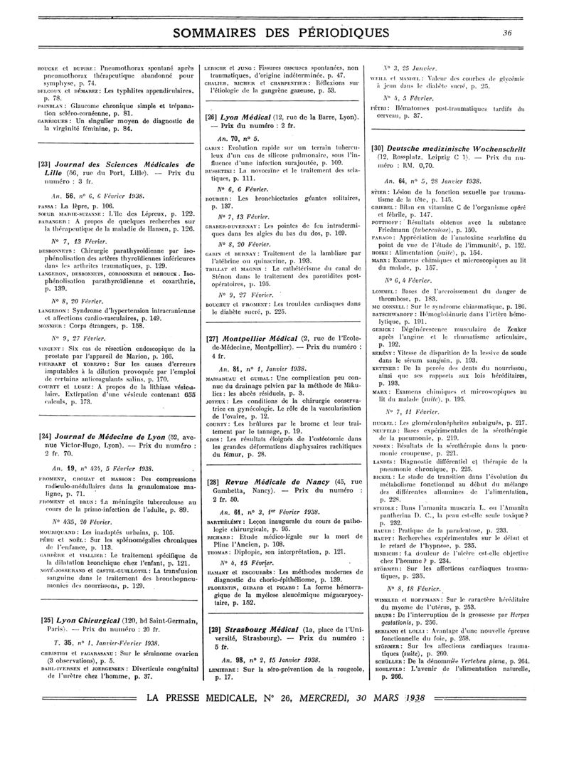 1938, Sommaires des périodiques. -