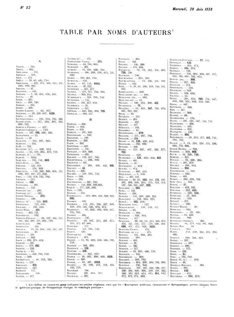 1938, Volume de tables. -