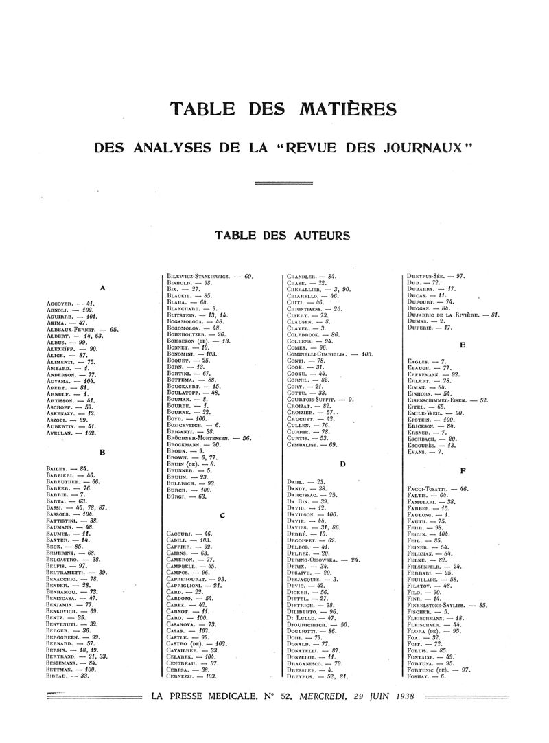 1938, Volume de tables. -