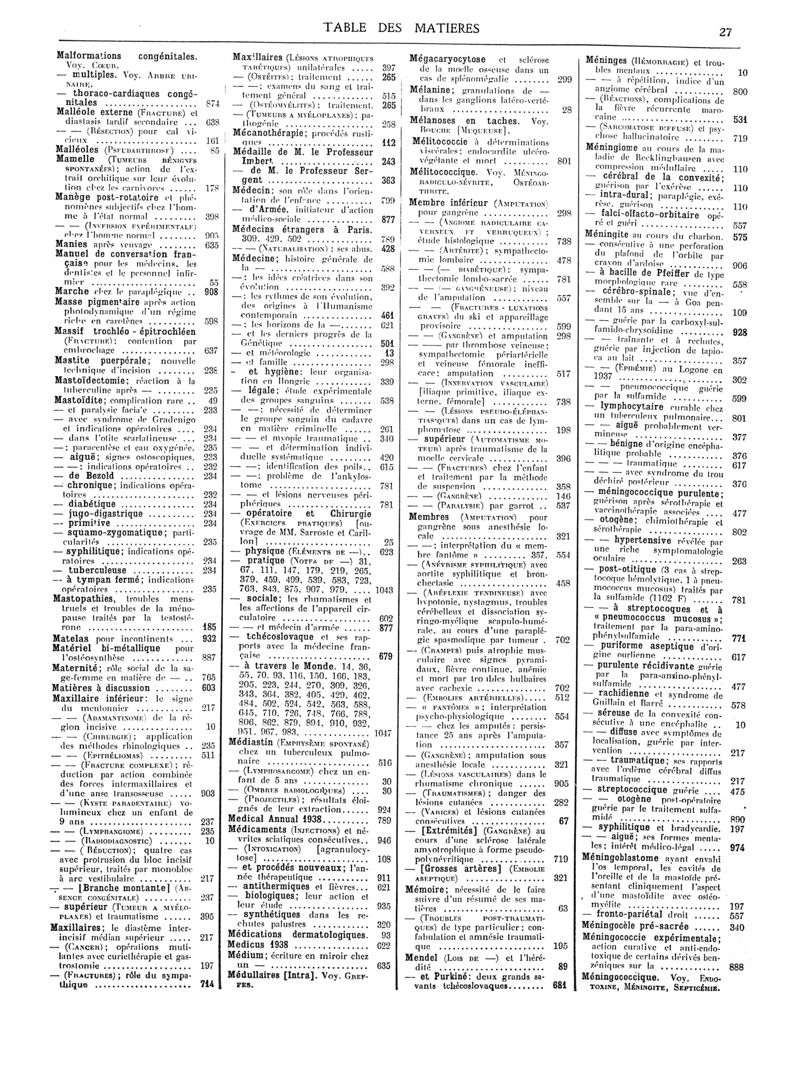 1938, Volume de tables. -