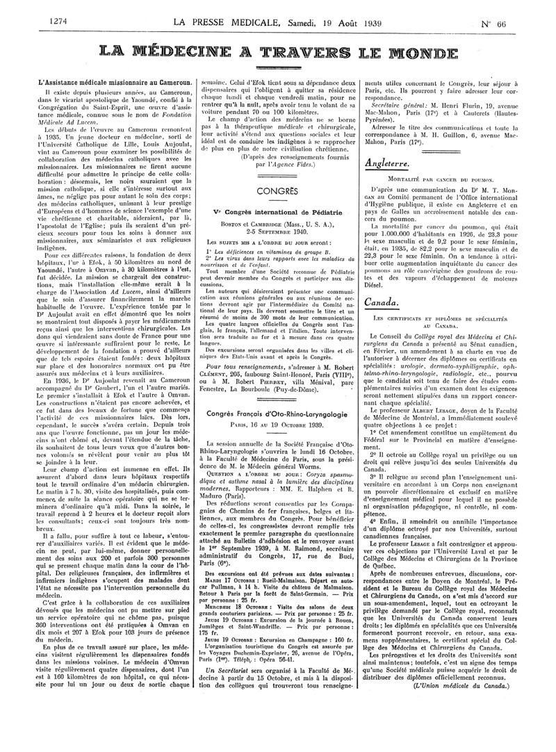 1939, Articles originaux. -