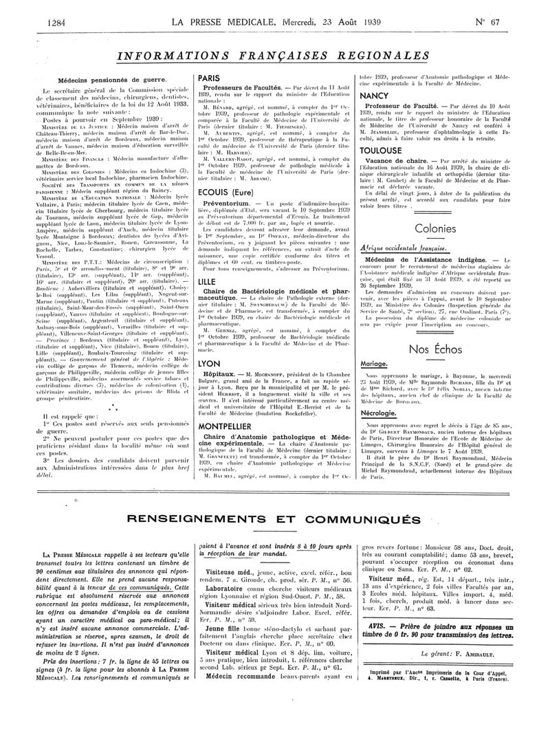1939, Articles originaux. -