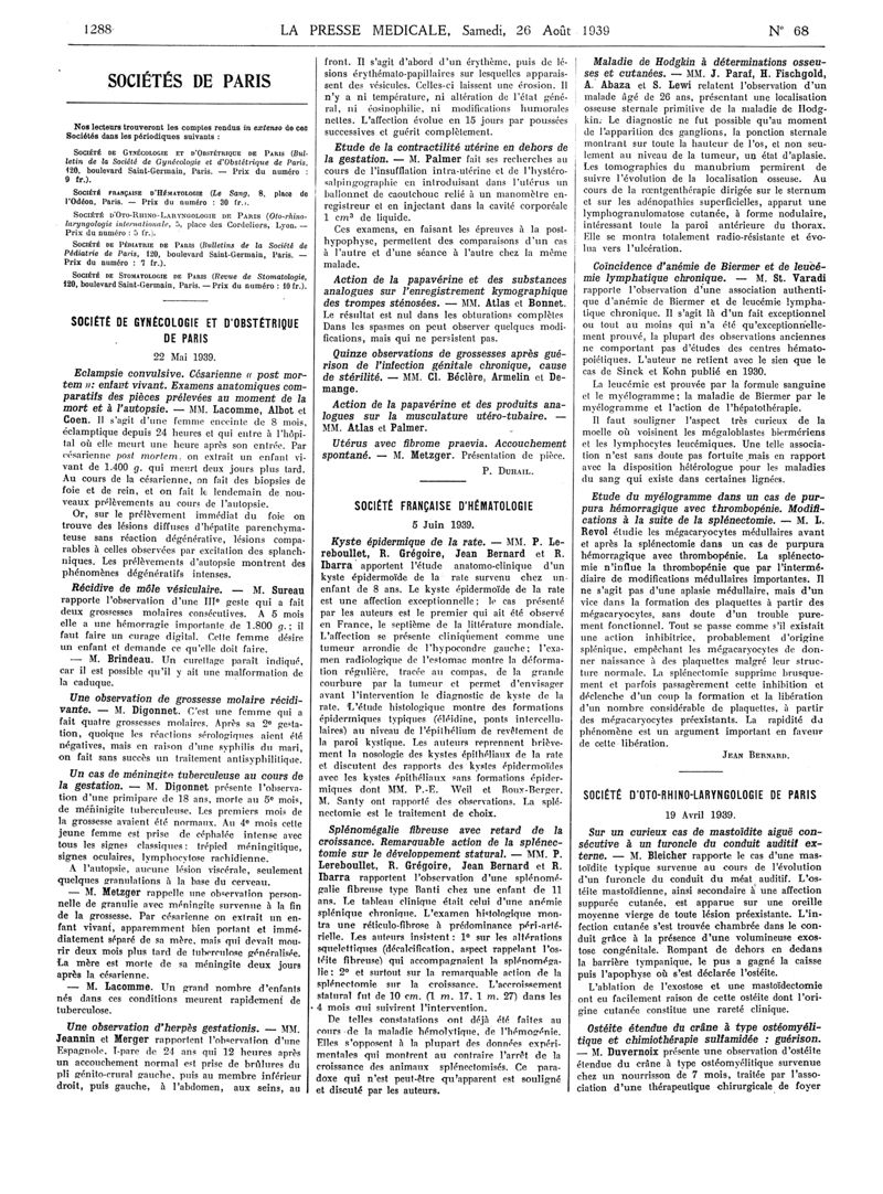 1939, Articles originaux. -