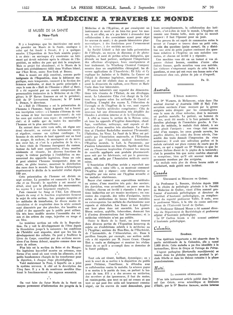 1939, Articles originaux. -