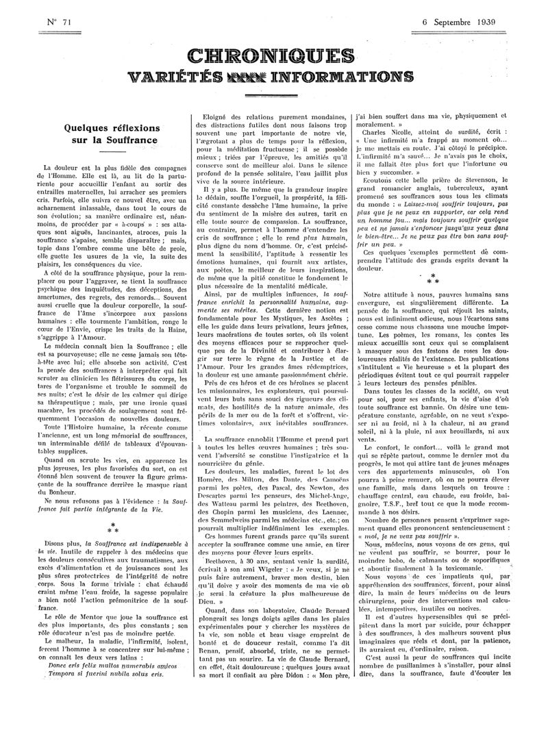 1939, Articles originaux. -