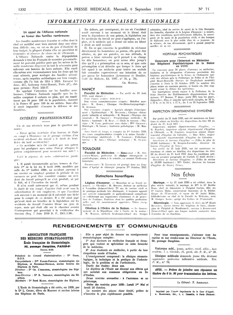 1939, Articles originaux. -