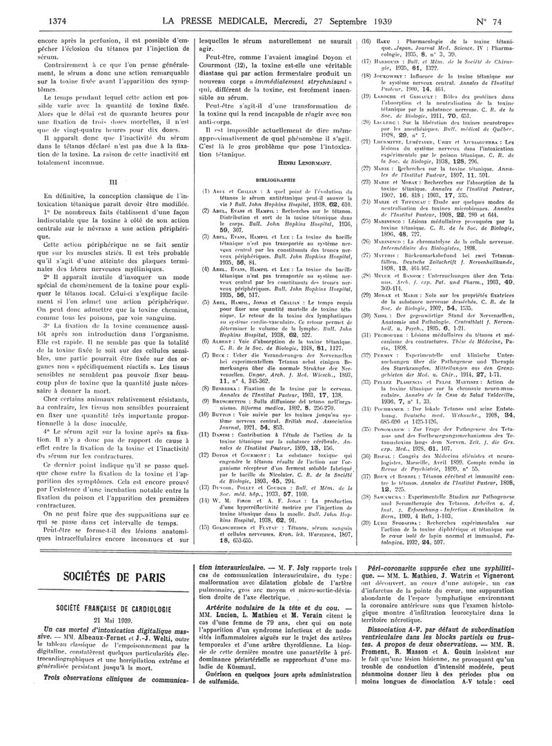 1939, Articles originaux. -