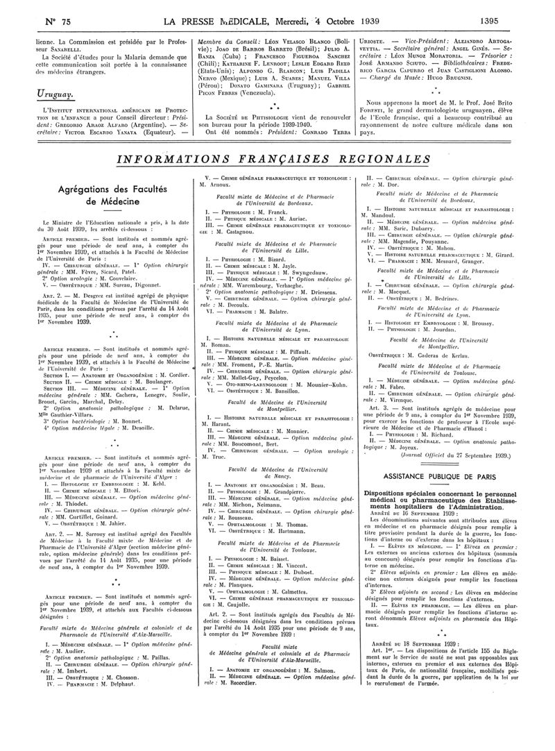 1939, Articles originaux. -