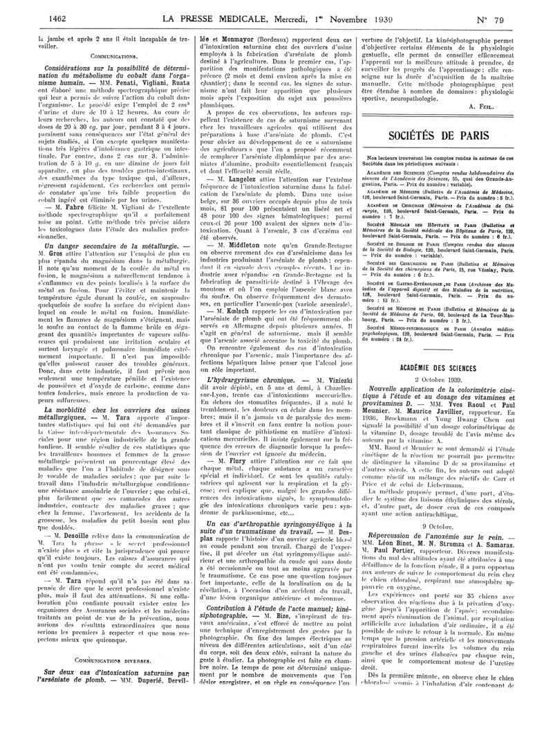 1939, Articles originaux. -