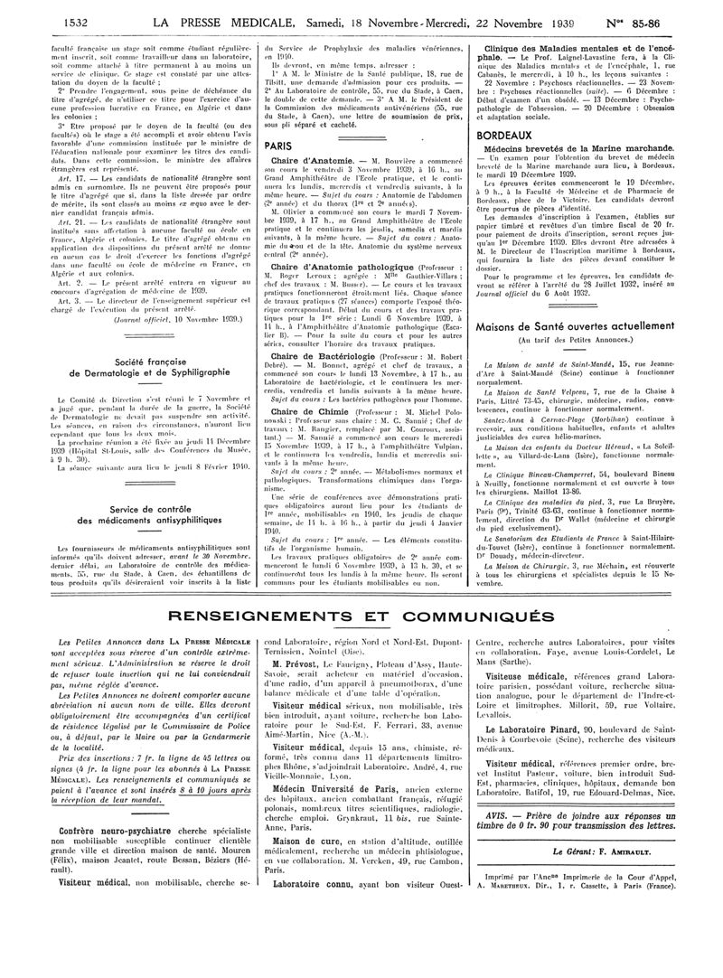 1939, Articles originaux. -