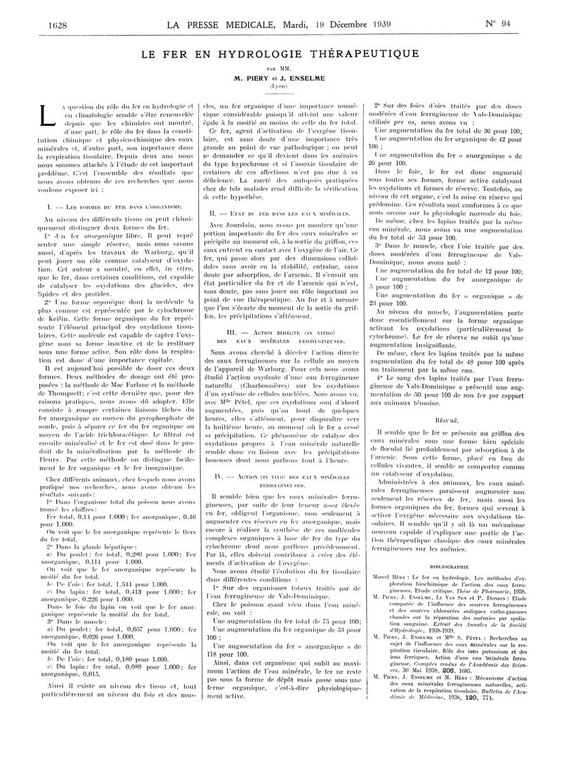 1939, Articles originaux. -