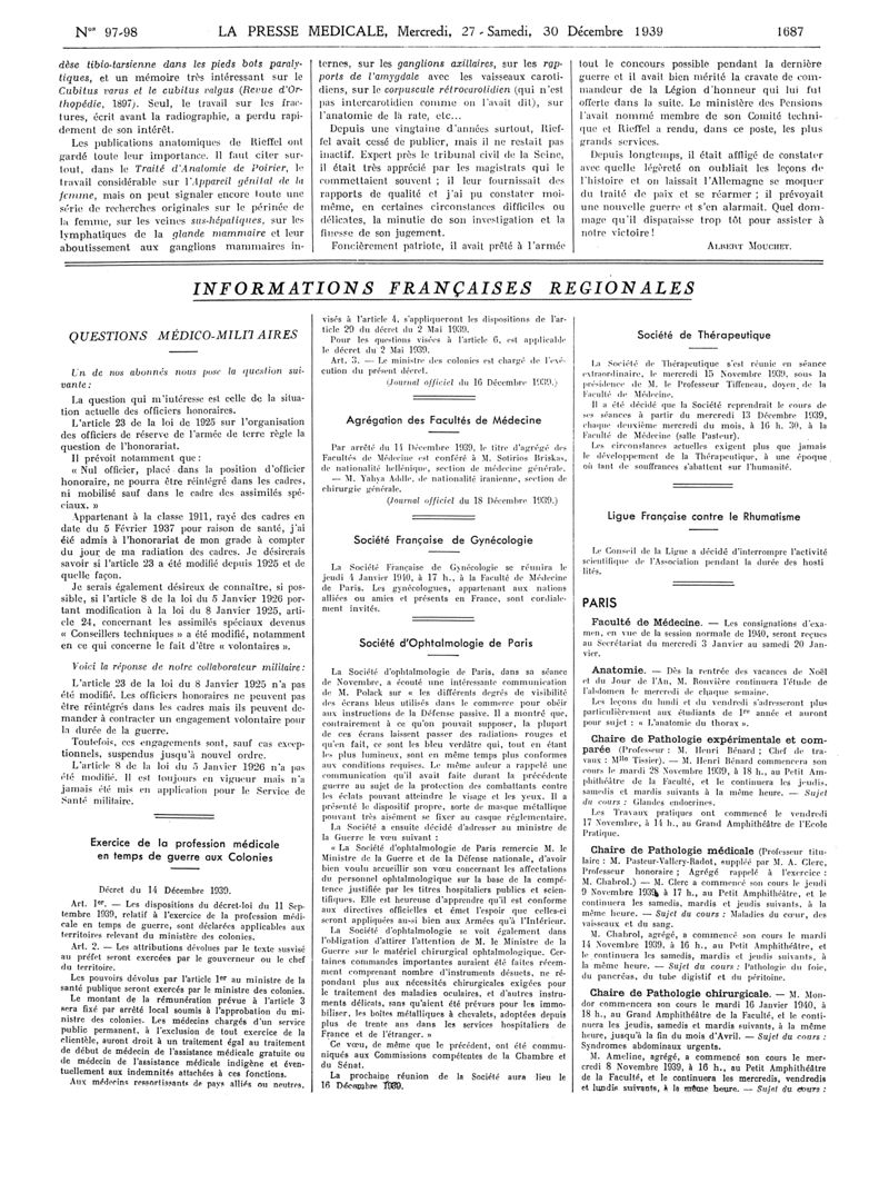 1939, Articles originaux. -