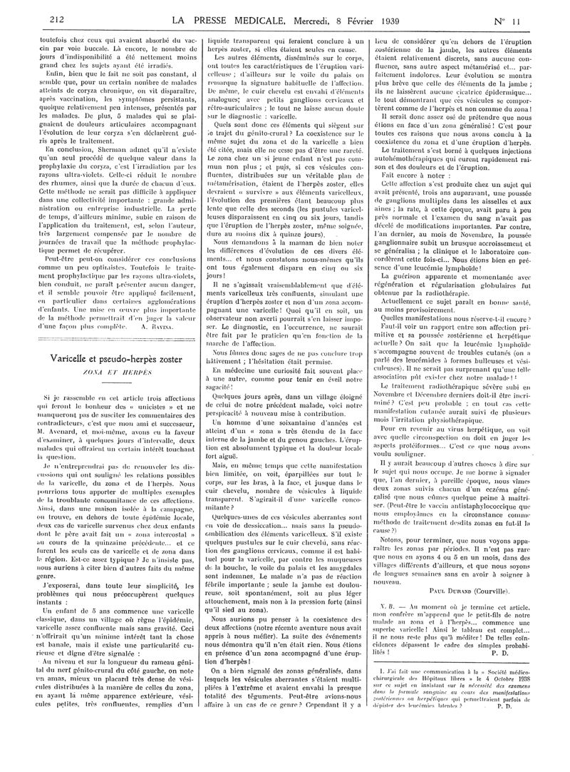 1939, Articles originaux. -