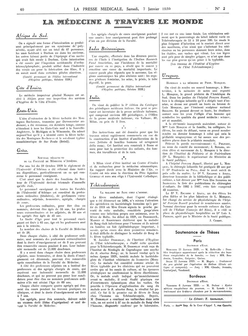 1939, Articles originaux. -