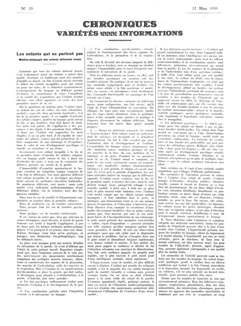 1939, Articles originaux. -