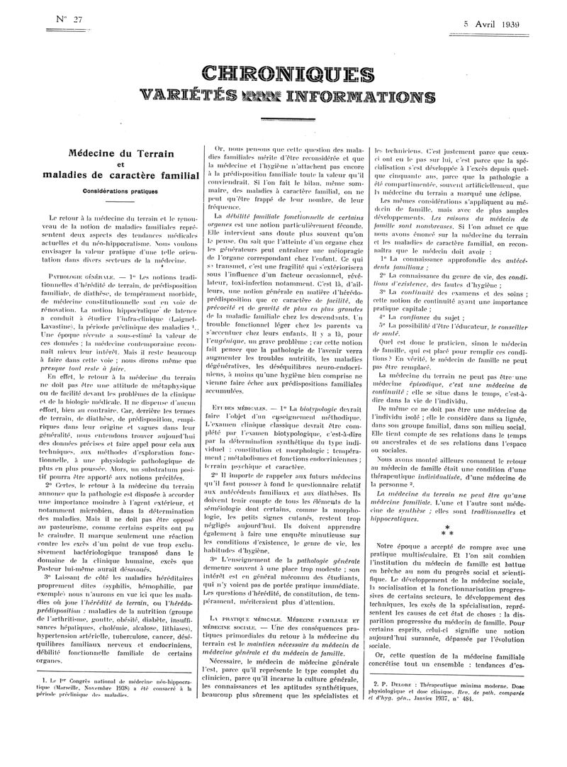 1939, Articles originaux. -
