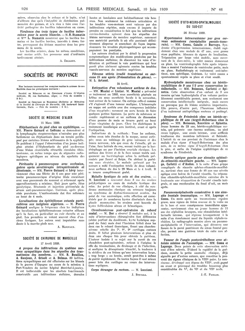 1939, Articles originaux. -