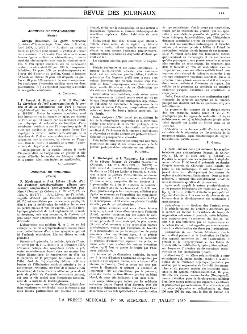 1939, Revue des journaux. -