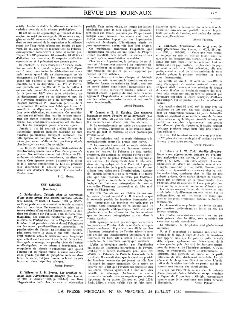 1939, Revue des journaux. -