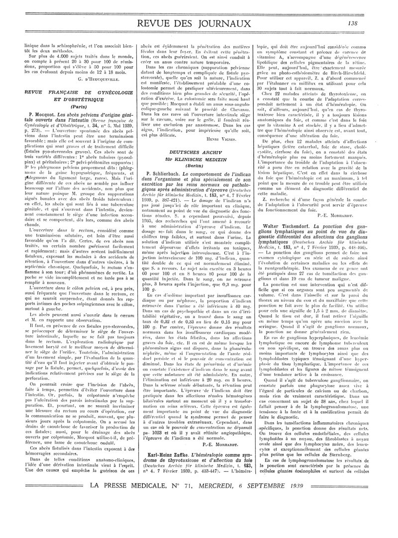 1939, Revue des journaux. -