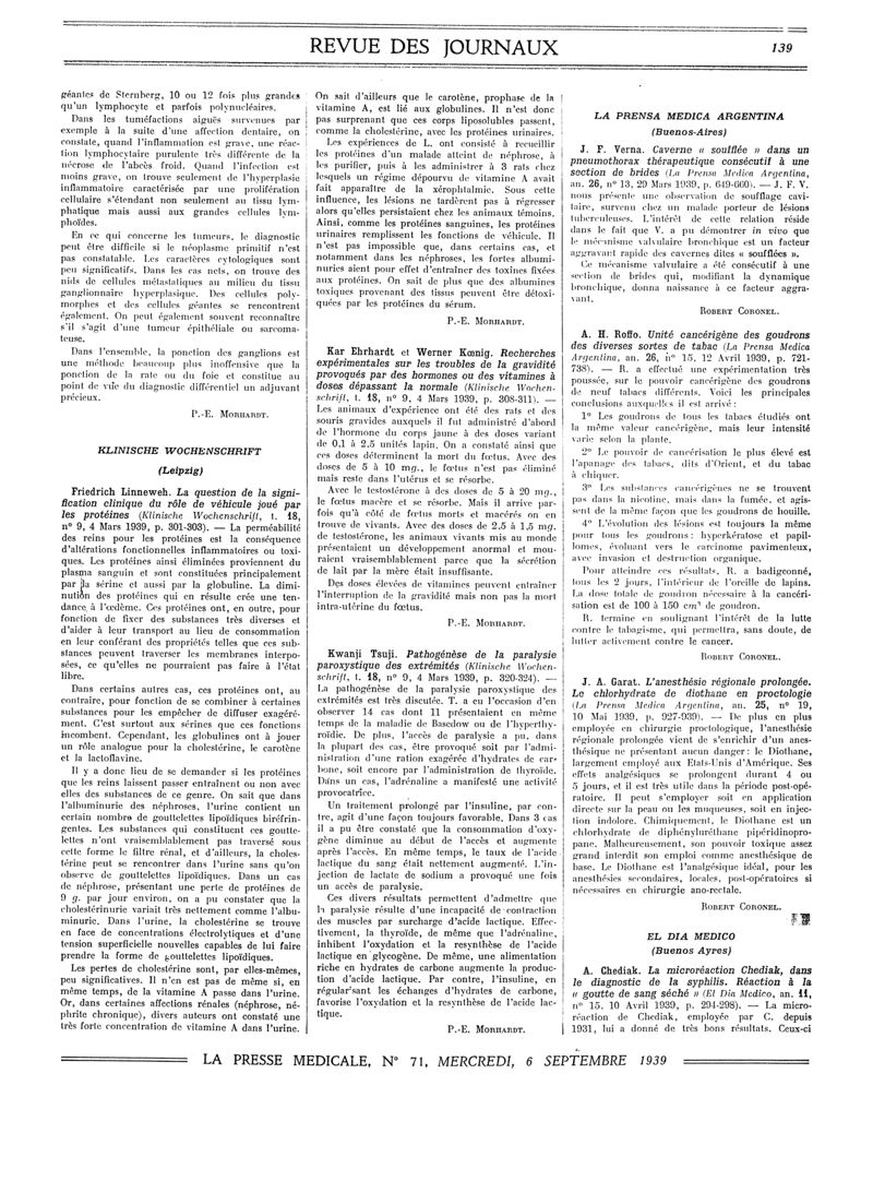 1939, Revue des journaux. -