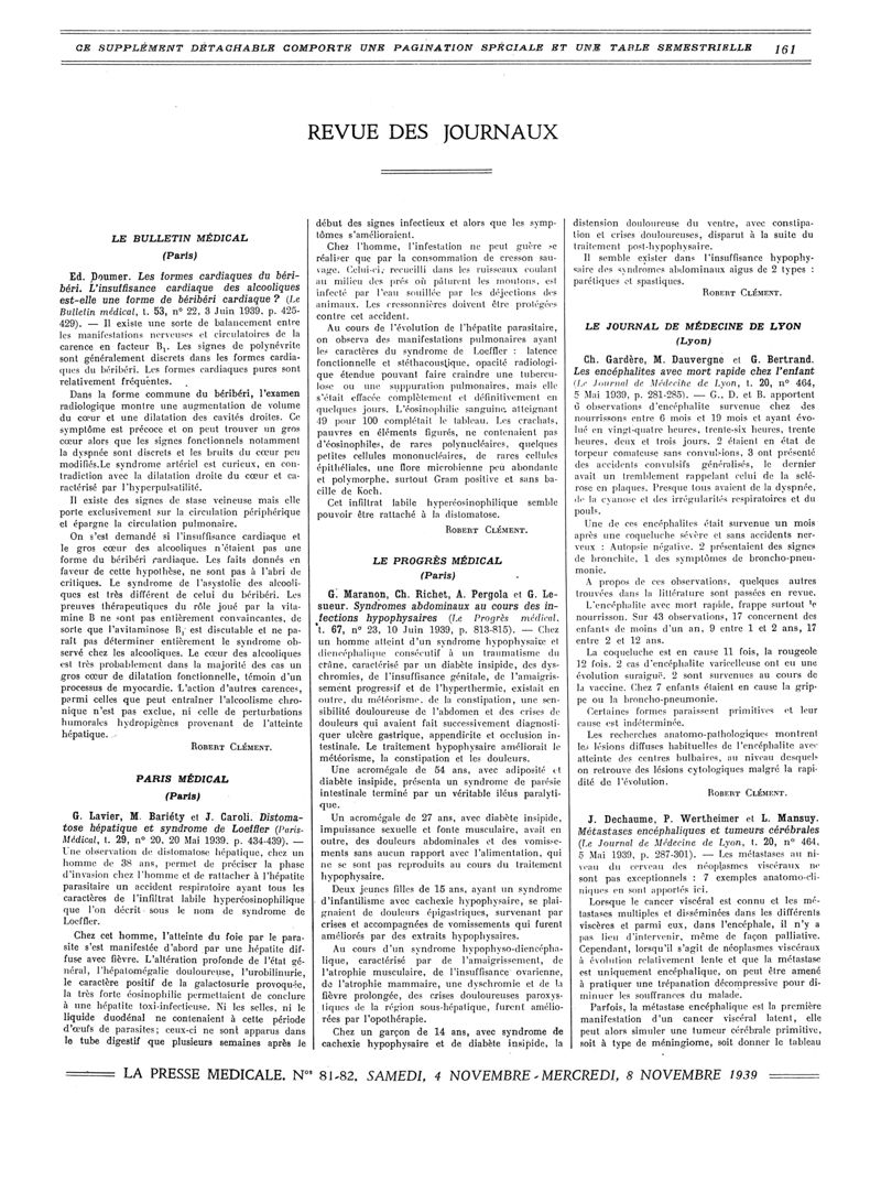 1939, Revue des journaux. -