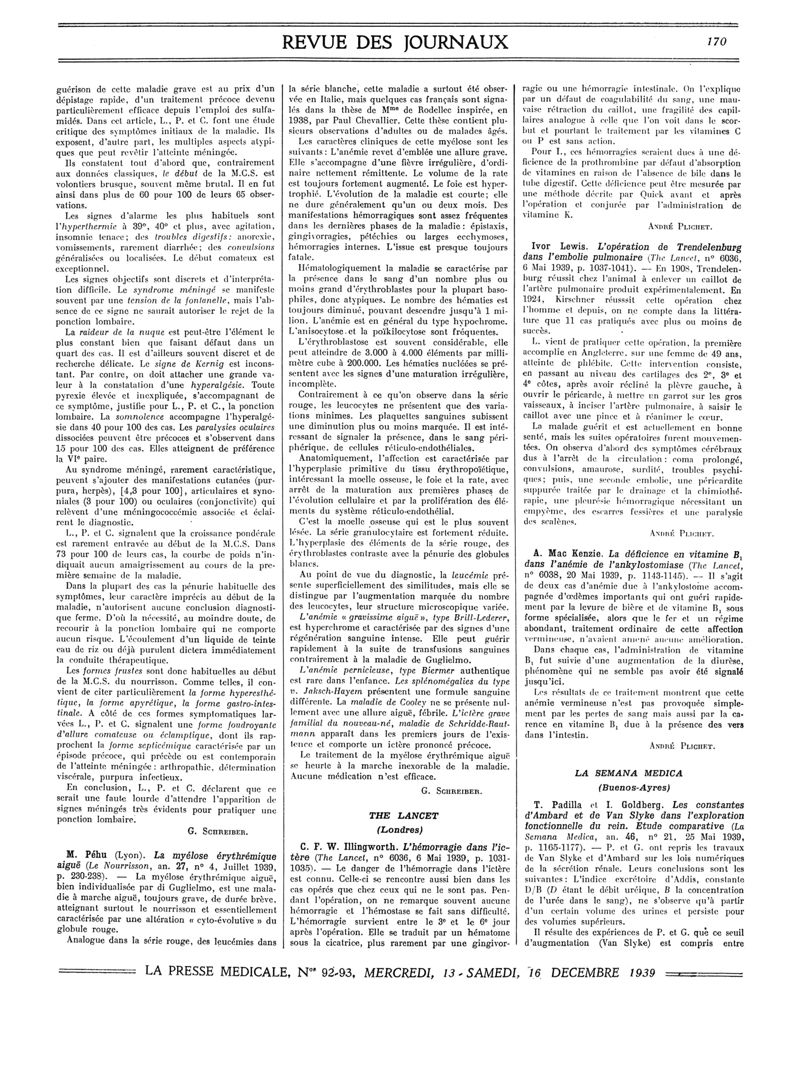 1939, Revue des journaux. -