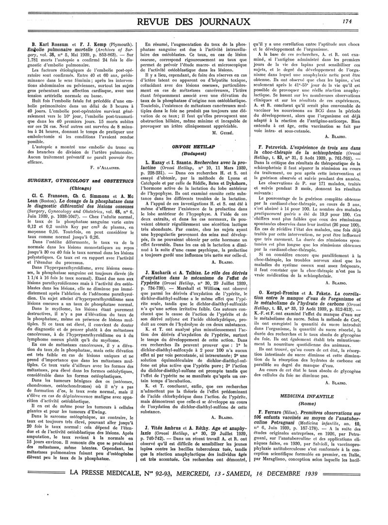 1939, Revue des journaux. -