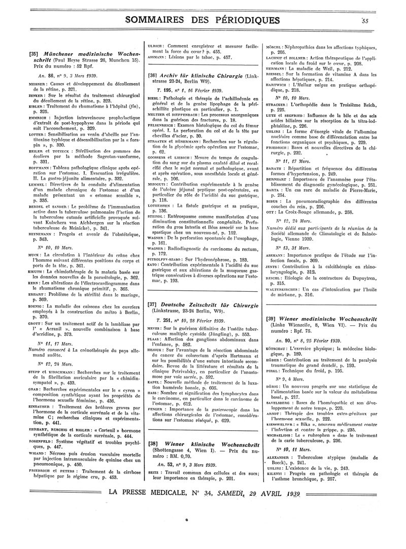 1939, Sommaires des périodiques. -