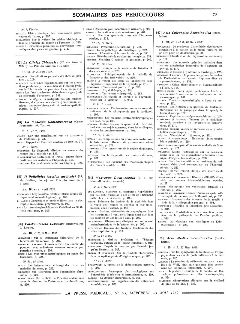 1939, Sommaires des périodiques. -