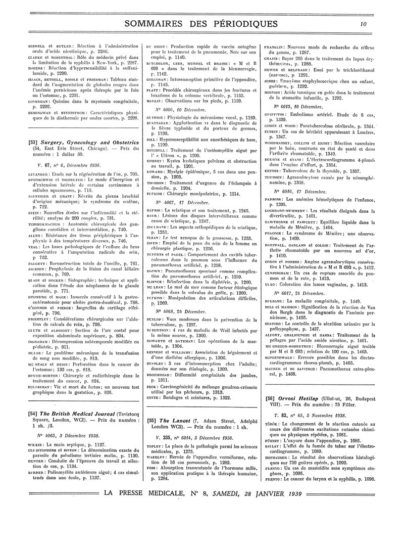 1939, Sommaires des périodiques. -