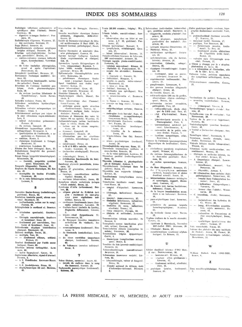 1939, Sommaires des périodiques. -
