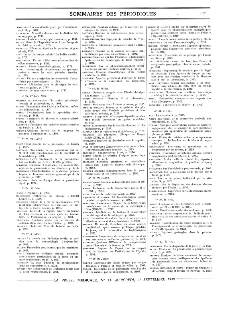 1939, Sommaires des périodiques. -