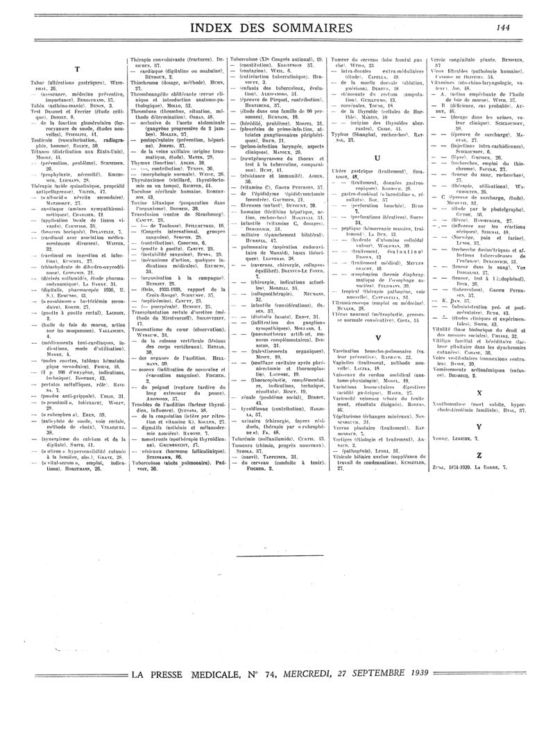 1939, Sommaires des périodiques. -